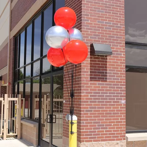 The Cluster Pole Kit is perfect for BIG attention! It is a residential housing industry favorite! DuraBalloon® means you never have saggy or deflated balloons but you do have the most weather-proof and durable HeliumFree™ balloon system in the world! Assembly is a snap as the brackets slide and pop into place and stems easily twist-lock into place. The staggered balloon look of this cluster bouquet is sure to grab the attention of passing traffic. The kit has everything you need, including the bands and clamps need to secure this kit to any existing pole, a thick 6061 aluminum cluster pole with snap-button locators and mounting brackets, 5 of the industries toughest 41" coated fiberglass stems, 5 upper holding cups and 5 DuraBalloon® Balloons (choose your own colors). After picking the colors you would like, enter them into the box above separated by comma. Example: red, welcome home purple, white, etc. Please note: welcome home, we love our residents, and move in specials are being discontinued.
