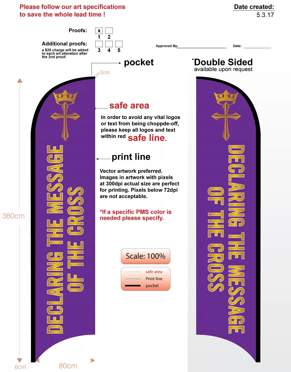 | Custom 15 foot DECLARING THE MESSAGE OF THE CROSS Double-sided Feather Flag Kit With Flag, Flagpole, Ground-spike, & Carry-case | ||