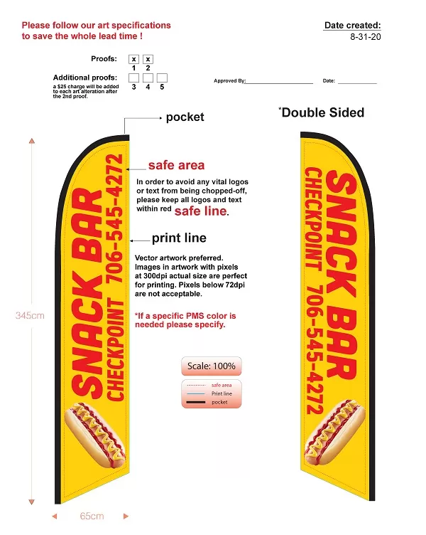 Custom Checkpoint Hot Dog Single-sided Nsfb Style Feather Flag |