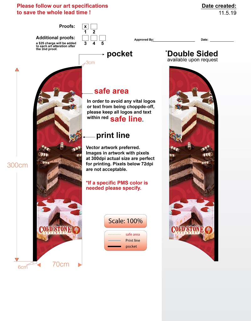 Home > All Feather Flags > Custom Cold Stone Cakes Double-sided Feather Flag Kit With Flag, Flagpole, Mounting Base, & Carry-case