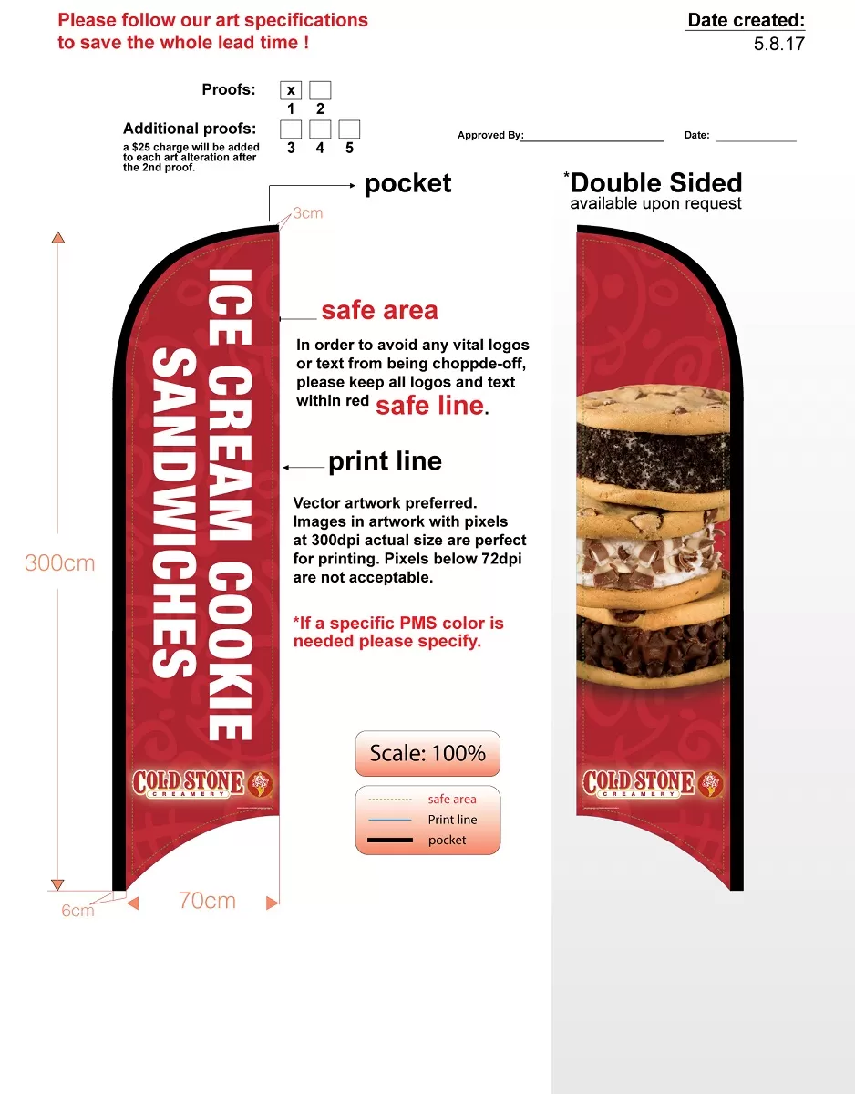 Home > Custom Flags Sold Examples > Custom Cold Stone Ice Cream Sandwiches Double-sided Feather Flag Kit With Flag, Flagpole, Ground-spike, & Carry-case