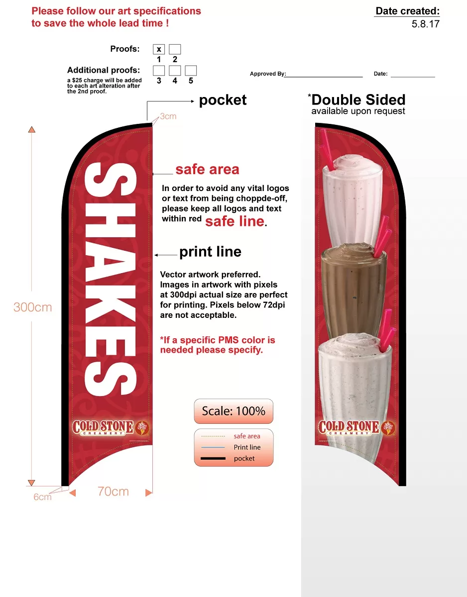 | Custom Cold Stone Shakes Double-sided Feather Flag - no hardware - flag only |