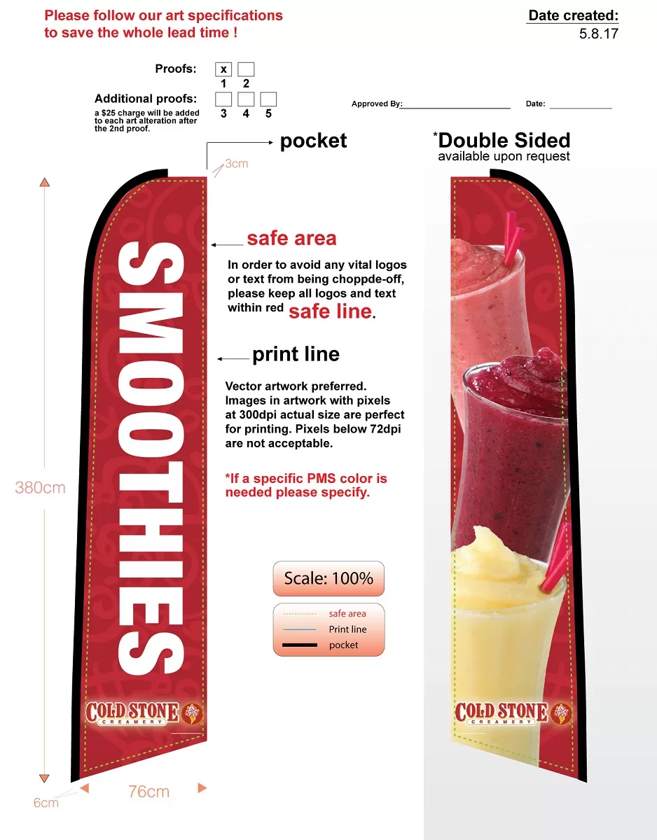 Custom Cold Stone Smoothie Double-sided Swooper Flag & Flagpole - No Mounting Base