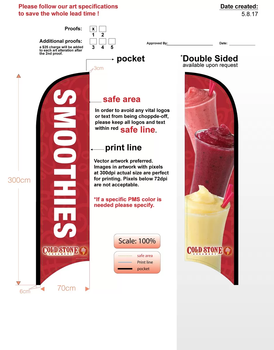 Custom Cold Stone Smoothies Double-sided Feather Flag flag only - no hardware |