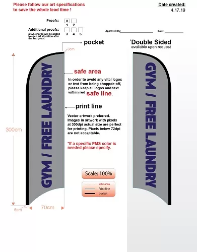 Home > Custom Flags Sold Examples > Custom Gym / Free Laundry Med Double-sided Feather Flag Kit Includes Flag, Flagpole, Ground-spike, & Carry-case