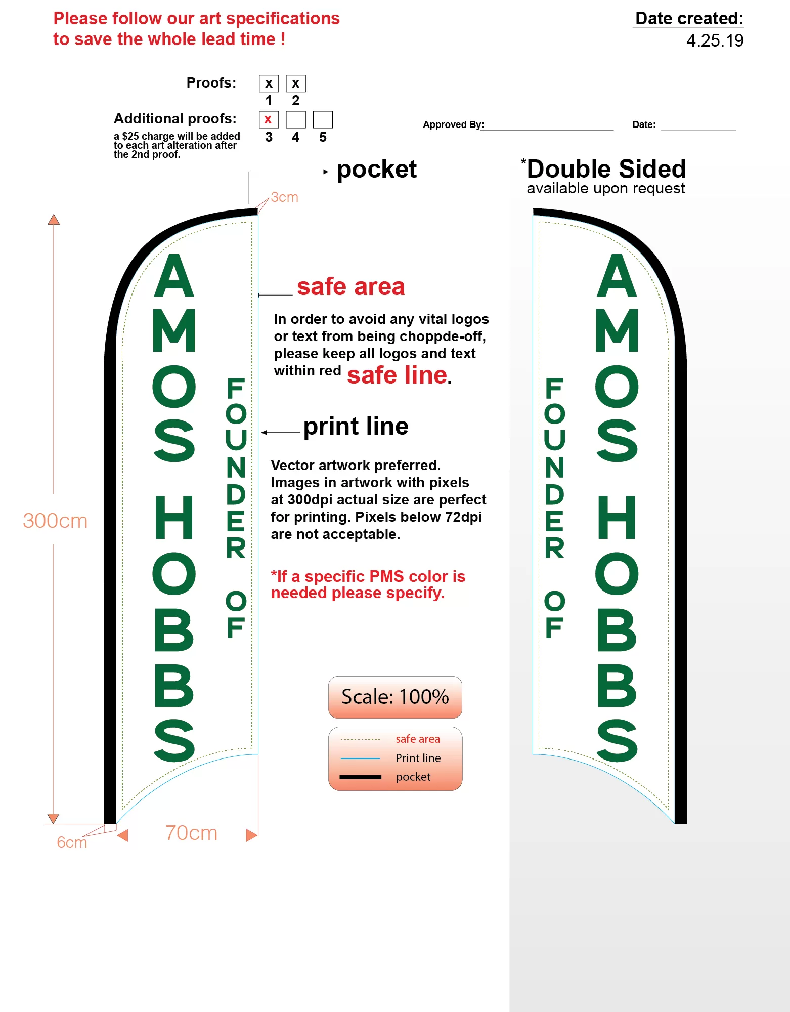 Custom Hobbs Founder Double Sided Wind Free Feather Flag Kit Includes flag, flagpole, & ground-spike |