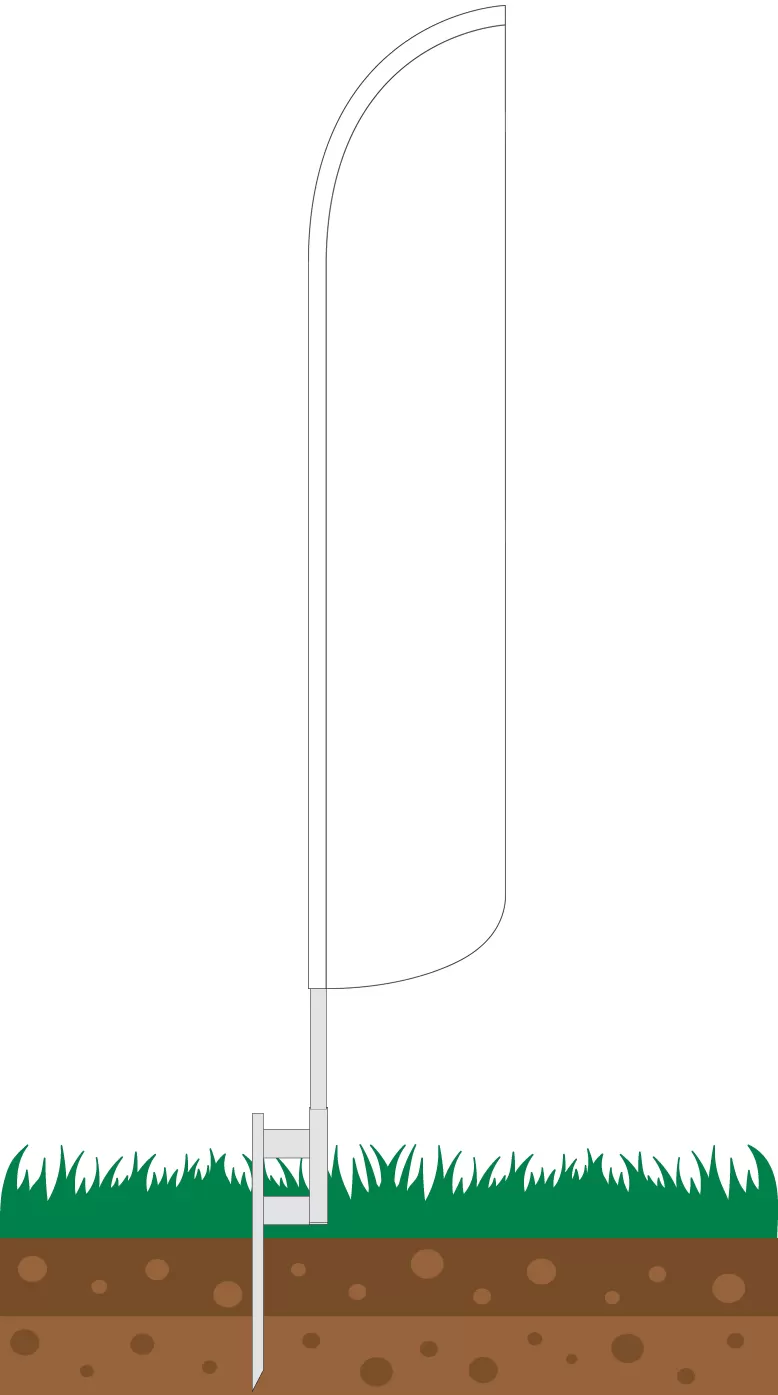 This Feather Flag, also called a Feather Banner, has a vibrant colored background with bold graphics and text. Great for the front of your business or out by the road, this flag will flutter & flap with a slight breeze. This flag measures approximately 2.5 feet wide by 11.5 feet tall. When installed on the flagpole it is nearly 15 feet tall. Constructed from UV treated, lightweight and affordable polyester. The printing on our flags is dyed-thru so the message is visible from both sides. It has a sewn sleeve that easily slips over the specially designed flagpole that is sold separately. To use this flag you will also need to purchase the flag hardware. Normal ground installation requires a flagpole and a ground-spike. These can be added to your order by clicking the 2 check-boxes above. You can also view these items in our Flagpoles-&-Hardware category. Purchase one of our feather banners today and get your business or event noticed!