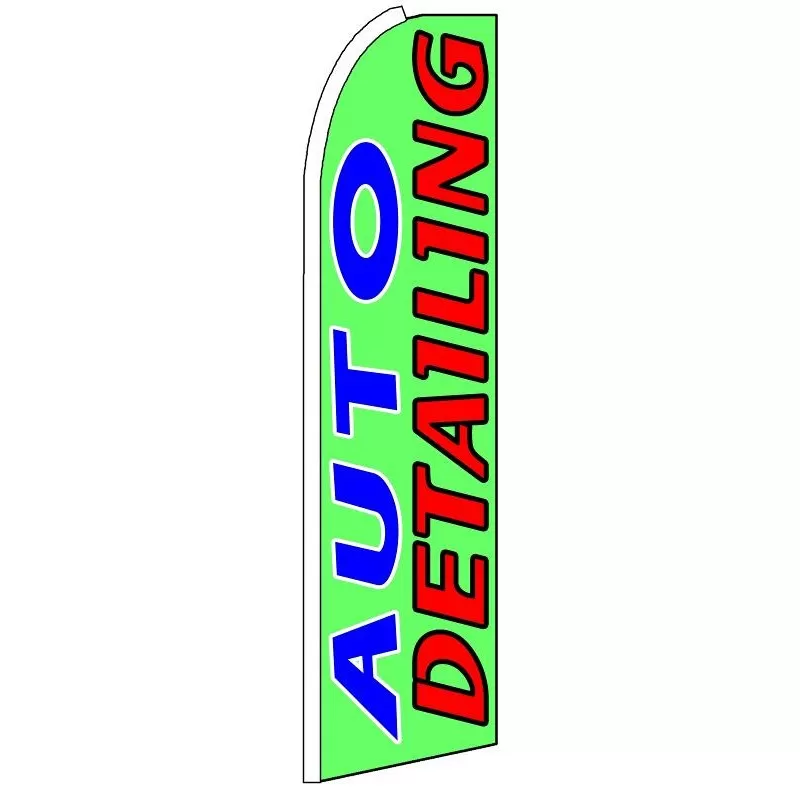This Feather Flag, also called a Feather Banner, has a vibrant colored background with bold graphics and text. Great for the front of your business or out by the road, this flag will flutter & flap with a slight breeze. This flag measures approximately 2.5 feet wide by 11.5 feet tall. When installed on the flagpole it is nearly 15 feet tall. Constructed from UV treated, lightweight and affordable polyester. The printing on our flags is dyed-thru so the message is visible from both sides. It has a sewn sleeve that easily slips over the specially designed flagpole that is sold separately. To use this flag you will also need to purchase the flag hardware. Normal ground installation requires a flagpole and a ground-spike. These can be added to your order by clicking the 2 check-boxes above. You can also view these items in our Flagpoles-&-Hardware category. Purchase one of our feather banners today and get your business or event noticed!