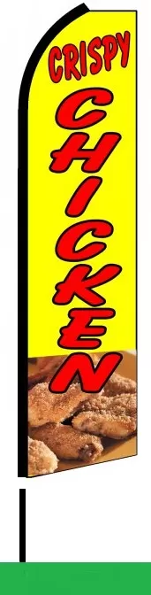 This Feather Flag, also called a Feather Banner, has a vibrant colored background with bold graphics and text. Great for the front of your business or out by the road, this flag will flutter & flap with a slight breeze. This flag measures approximately 2.5 feet wide by 11.5 feet tall. When installed on the flagpole it is nearly 15 feet tall. Constructed from UV treated, lightweight and affordable polyester. The printing on our flags is dyed-thru so the message is visible from both sides. It has a sewn sleeve that easily slips over the specially designed flagpole that is sold separately. To use this flag you will also need to purchase the flag hardware. Normal ground installation requires a flagpole and a ground-spike. These can be added to your order by clicking the 2 check-boxes above. You can also view these items in our Flagpoles-&-Hardware category. Purchase one of our feather banners today and get your business or event noticed!