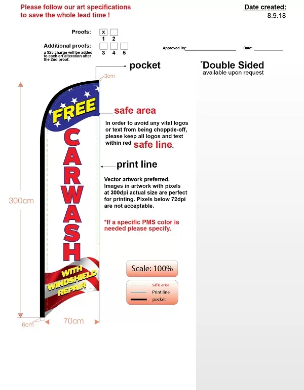 Custom Car Wash Med Single-sided Feather Flag Kit With Flag, Flagpole, Ground-spike, & Carry-case