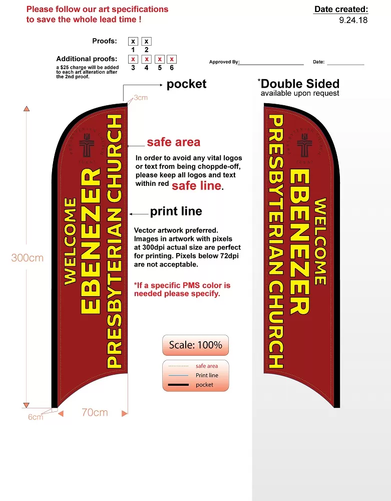 Home > Custom Flags Sold Examples > Custom Ebenezer Med Double Sided Feather Flag Kit Includes Flag, Flagpole, Ground-spike, & Carry-case