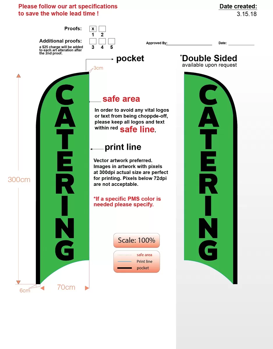 Home > Custom Flags Sold Examples > Custom Med Double-sided Catering Feather Flag Kit With Flag, Flagpole, & Cross Base