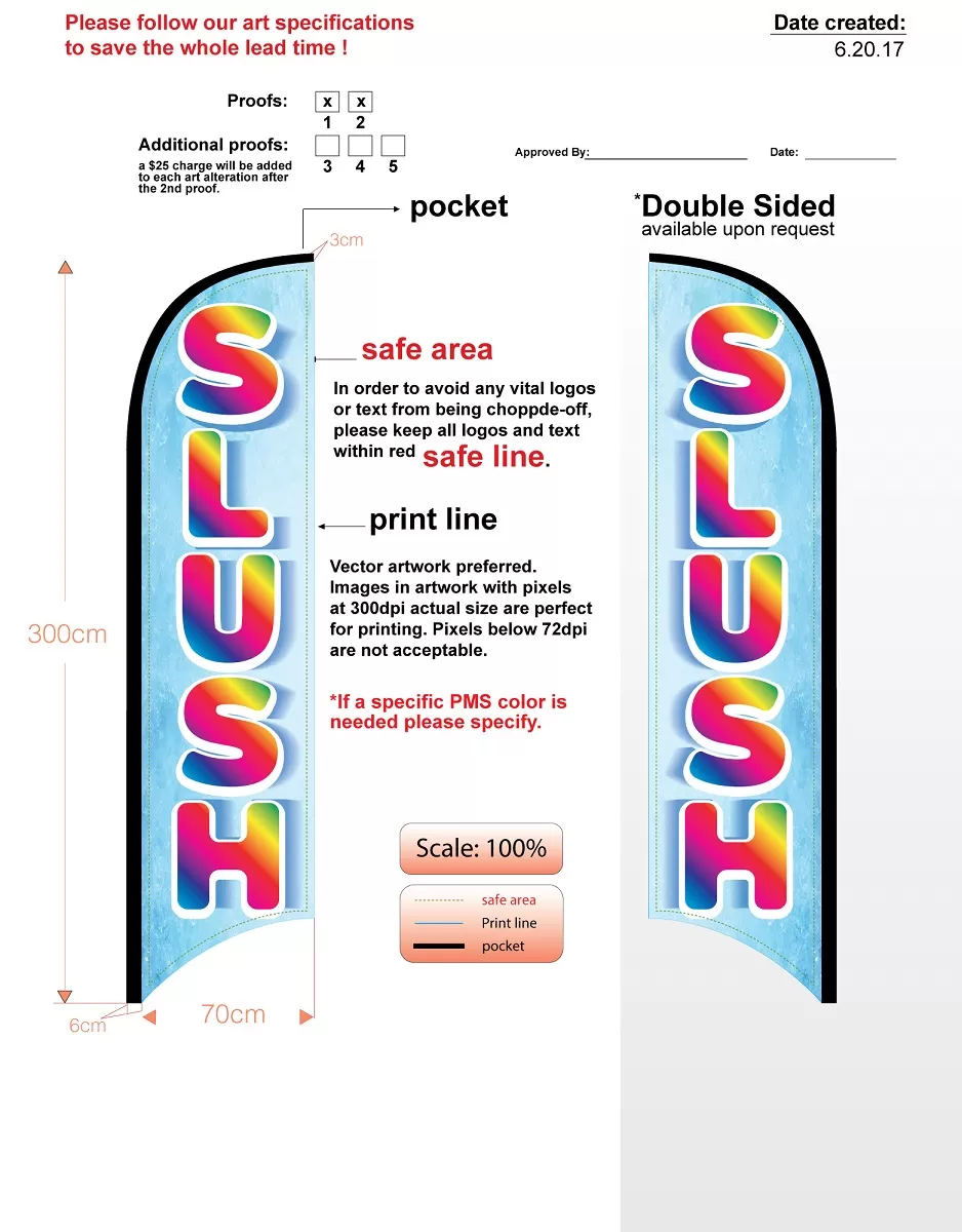 Home > Custom Flags Sold Examples > Custom Slush Double-sided Feather Flag Kit With Flag, Flagpole, Mounting Base, & Carry-case
