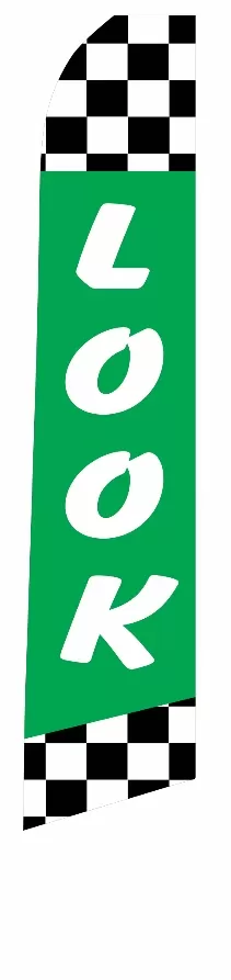 This Feather Flag, also called a Feather Banner, has a vibrant colored background with bold graphics and text. Great for the front of your business or out by the road, this flag will flutter & flap with a slight breeze. This flag measures approximately 2.5 feet wide by 11.5 feet tall. When installed on the flagpole it is nearly 15 feet tall. Constructed from UV treated, lightweight and affordable polyester. The printing on our flags is dyed-thru so the message is visible from both sides. It has a sewn sleeve that easily slips over the specially designed flagpole that is sold separately. To use this flag you will also need to purchase the flag hardware. Normal ground installation requires a flagpole and a ground-spike. These can be added to your order by clicking the 2 check-boxes above. You can also view these items in our Flagpoles-&-Hardware category. Purchase one of our feather banners today and get your business or event noticed!