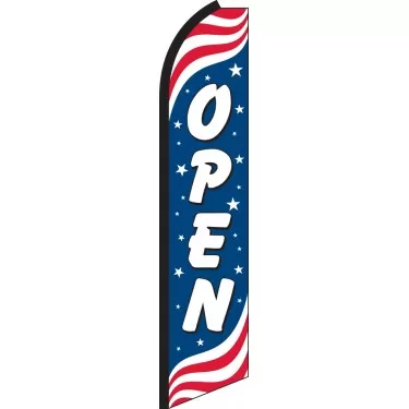 This Feather Flag, also called a Feather Banner, has a vibrant colored background with bold graphics and text. Great for the front of your business or out by the road, this flag will flutter & flap with a slight breeze. This flag measures approximately 2.5 feet wide by 11.5 feet tall. When installed on the flagpole it is nearly 15 feet tall. Constructed from UV treated, lightweight and affordable polyester. The printing on our flags is dyed-thru so the message is visible from both sides. It has a sewn sleeve that easily slips over the specially designed flagpole that is sold separately. To use this flag you will also need to purchase the flag hardware. Normal ground installation requires a flagpole and a ground-spike. These can be added to your order by clicking the 2 check-boxes above. You can also view these items in our Flagpoles-&-Hardware category. Purchase one of our feather banners today and get your business or event noticed!
