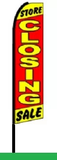 This Feather Flag, also called a Feather Banner, has a vibrant colored background with bold graphics and text. Great for the front of your business or out by the road, this flag will flutter & flap with a slight breeze. This flag measures approximately 2.5 feet wide by 11.5 feet tall. When installed on the flagpole it is nearly 15 feet tall. Constructed from UV treated, lightweight and affordable polyester. The printing on our flags is dyed-thru so the message is visible from both sides. It has a sewn sleeve that easily slips over the specially designed flagpole that is sold separately. To use this flag you will also need to purchase the flag hardware. Normal ground installation requires a flagpole and a ground-spike. These can be added to your order by clicking the 2 check-boxes above. You can also view these items in our Flagpoles-&-Hardware category. Purchase one of our feather banners today and get your business or event noticed!