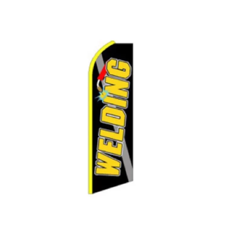 This Feather Flag, also called a Feather Banner, has a vibrant colored background with bold graphics and text. Great for the front of your business or out by the road, this flag will flutter & flap with a slight breeze. This flag measures approximately 2.5 feet wide by 11.5 feet tall. When installed on the flagpole it is nearly 15 feet tall. Constructed from UV treated, lightweight and affordable polyester. The printing on our flags is dyed-thru so the message is visible from both sides. It has a sewn sleeve that easily slips over the specially designed flagpole that is sold separately. To use this flag you will also need to purchase the flag hardware. Normal ground installation requires a flagpole and a ground-spike. These can be added to your order by clicking the 2 check-boxes above. You can also view these items in our Flagpoles-&-Hardware category. Purchase one of our feather banners today and get your business or event noticed!
