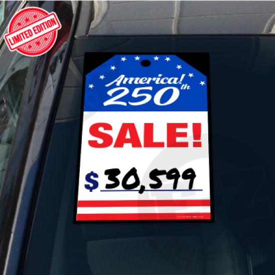 Stick your tag where it will be seen! This adhesive windshield tag design decal is printed in black ink on fluorescent red. Great for any special event, promotion or any occasion. An inexpensive, yet highly effective sales tool to advertise a special price. Sold by the dozen {12 per pack}. Size: 7 inches wide x 11 inches tall. Neatly shrink wrapped in packs of a dozen with a chipboard backer to prevent curling during storage. Made of durable, waterproof vinyl, these bright, fluorescent signs demand attention! Each sign is slit on the back for easy application. Removable adhesive allows easy, clean removal. Please note these adhesive signs are not reusable. THIS IS A LIMITED EDITION ITEM |